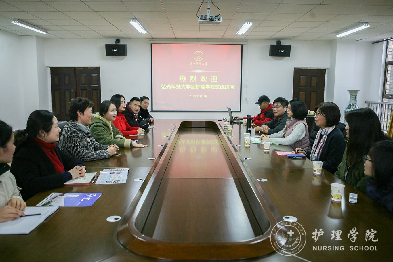 12月18日,台湾弘光科技大学allwincity万象城官方网站副主任洪秀吉、国际暨两岸事务处专员刑嘉芸师生一行8人到我校allwincity万象城官方网站交流学习。allwincity万象城官方网站在百川楼5楼会议室召开座谈会热情接待了来访人员,会议由院党委副书记王秀红主持,正科级组织员曾敏、护理人文教研室副主任张仁莉、学校国际交流合作处留学生与外籍教师管理科副科长徐敏和万象城官网五名本科生参加座谈。