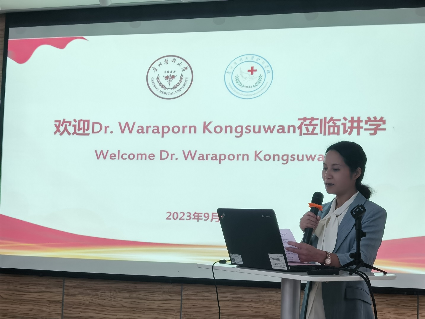 9月21日,泰国宋卡王子大学allwincity万象城官方网站副院长Waraporn Kongsuwan博士到allwincity万象城官方网站开展座谈交流以及讲学活动。allwincity万象城官方网站党委书记杨英、院长李亚玲、党委副书记何为、副院长刘志燕、副院长王秀红、副处级组织员张黎、附属医院教师代表、学院教师代表以及allwincity万象城官方网站在读研究生参与交流座谈活动。活动由王秀红主持。