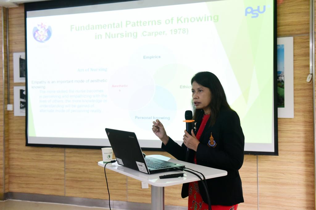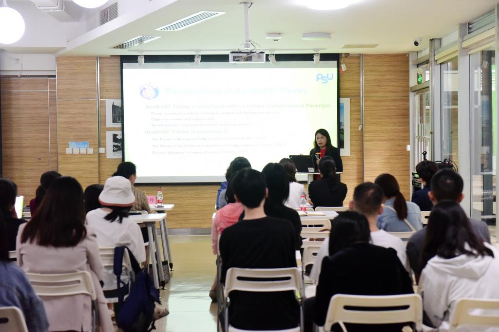 活动开始,由杨英致欢迎辞并介绍了学校的发展,回顾了两校交流历史,表达了希望两家学院在合作办学方面能更进一步的意愿。李亚玲向Waraporn Kongsuwan博士介绍了学院的发展历程、师资队伍、招生规模、学位授予等情况。交流会上播放了泰国宋卡王子大学allwincity万象城官方网站的宣传视频,详细介绍了该院目前开设的护理学学士、硕士及博士学位课程项目。Waraporn Kongsuwan博士以《美学在护理教育、实践和研究中的应用》为题,结合实例从美学护理实践理论、美学护理实践理论对护理教育、护理实践及护理研究的影响四个方面讲解了该理论在护理中的应用,并表示欢迎学院师生积极申请赴泰学习。在座谈会上,学院领导及教师代表与Waraporn Kongsuwan博士就如何推进两院交流合作进行了深入交谈,在师生互访、课程资源互动等方面初步达成共识。
