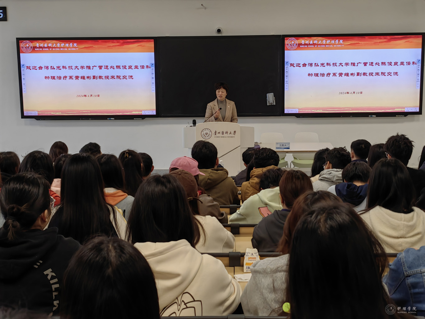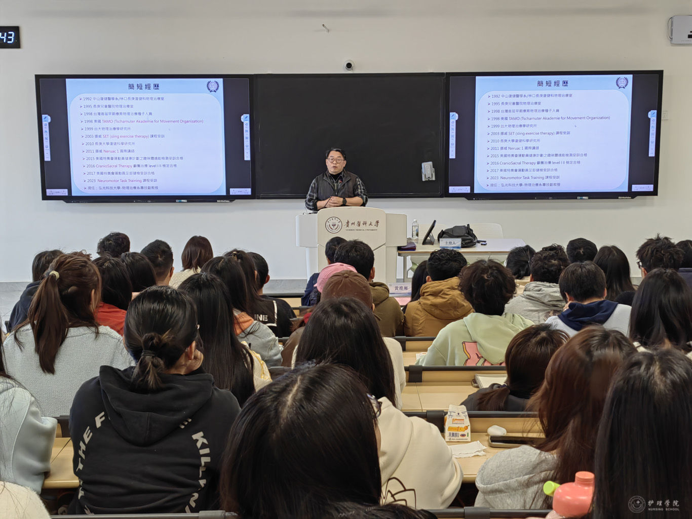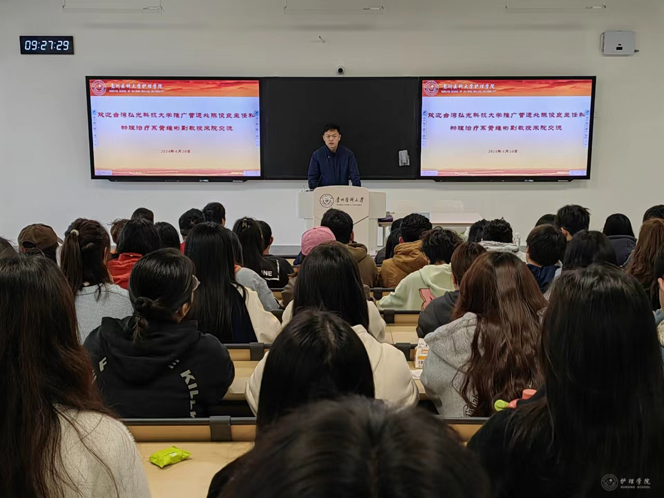4月10日,台湾弘光科技大学推广营运处主任陈俊良及物理治疗系副教授黄维彬到万象城官网交流。allwincity万象城官方网站党委副书记兼纪委书记何为、副院长王秀红、副处级组织员张黎、学校国际交流合作处港澳台事务管理科科长龙章波、allwincity万象城官方网站相关专业教师及2023级本科生代表近120余人参加交流活动。交流活动由王秀红主持。
