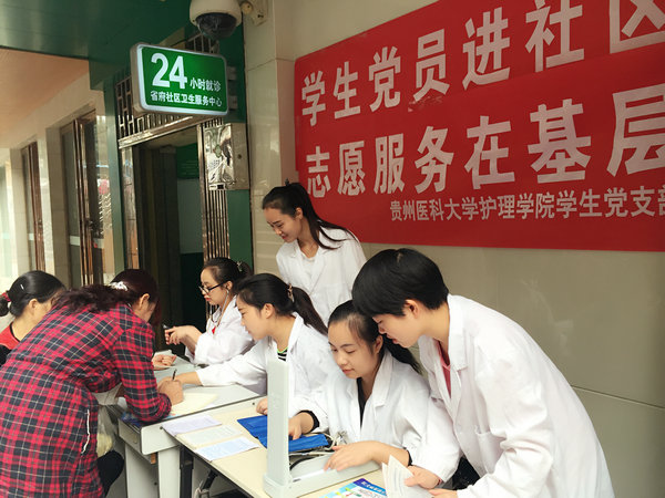 活动主要分为两个流程。第一是开展“敬老爱老,爱在重阳”关爱老党员活动,大家慰问了该社区80岁的老党员马宗幸老人,通过和他谈话,让学生党员明白了两个道理:第一,入党一定要动机单纯,千万不能存有私心,时刻保持党的先进性,而不是喊空话;第二,作为一名党员一定要保持一颗赤子之心,真正为人民办实事、办好事。活动第二个部分是开展社区健康宣教,免费测量血压活动。活动伊始,社区的老人纷纷排队测量血压并咨询健康保健问题。大家通过交谈了解到,有许多老人很少有机会去医院测量血压,他们都希望多开展这样的志愿服务进社区活动。