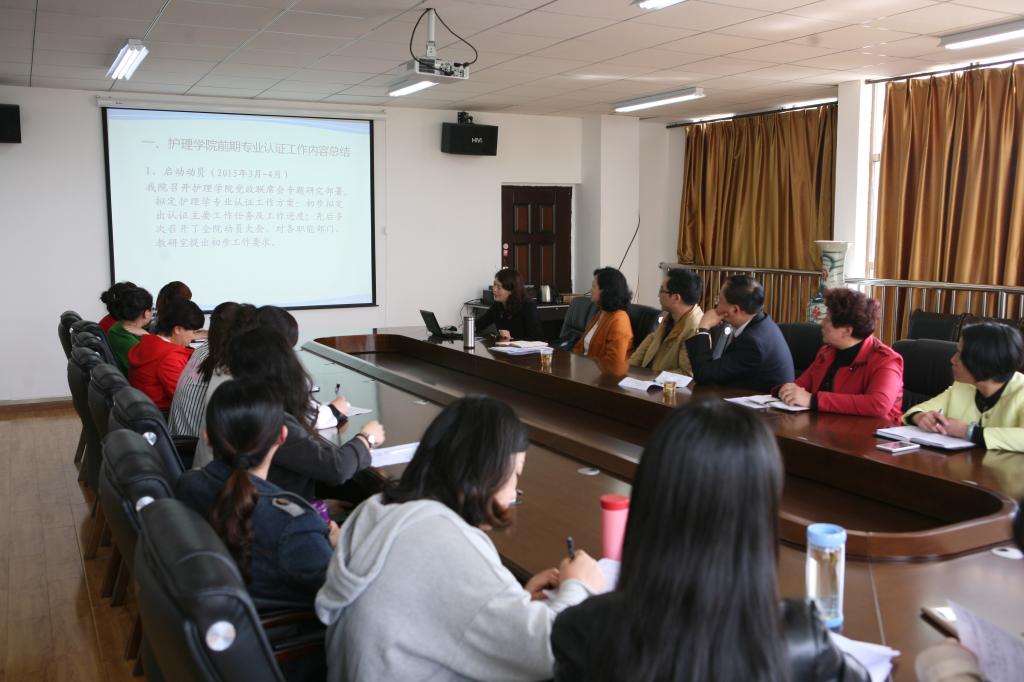 4月14日下午14:00,allwincity万象城官方网站在百川楼会议室召开了“专业认证工作专题会议”。会议由附属医院党委副书记、allwincity万象城官方网站院长李海洋主持。校党委委员、党委副书记、附属医院党委书记刘兴德、allwincity万象城官方网站党委书记贾秀英、副书记杨英、常务副院长郭永洪、副院长刘志燕、各科室负责人及全体教职工出席会议。