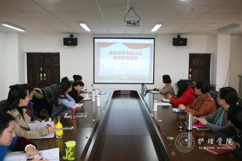 会议认真组织本单位全体教职工深入学习了本科教学工作审核评估及临床医学专业认证的《自评报告》。贾秀英宣读了《致全体教职工的一封信》,号召大家积极投身本科教学审核评估及临床专业认证两项重点工作;常务副院长郭永洪带领大家学习了本科教学审核评估《自评报告》,再次解读了评估相关知识;副书记杨英带领大家学习了临床医学专业认证《自评报告》,并就亲身参与的预认证接待工作谈了自己的感受。