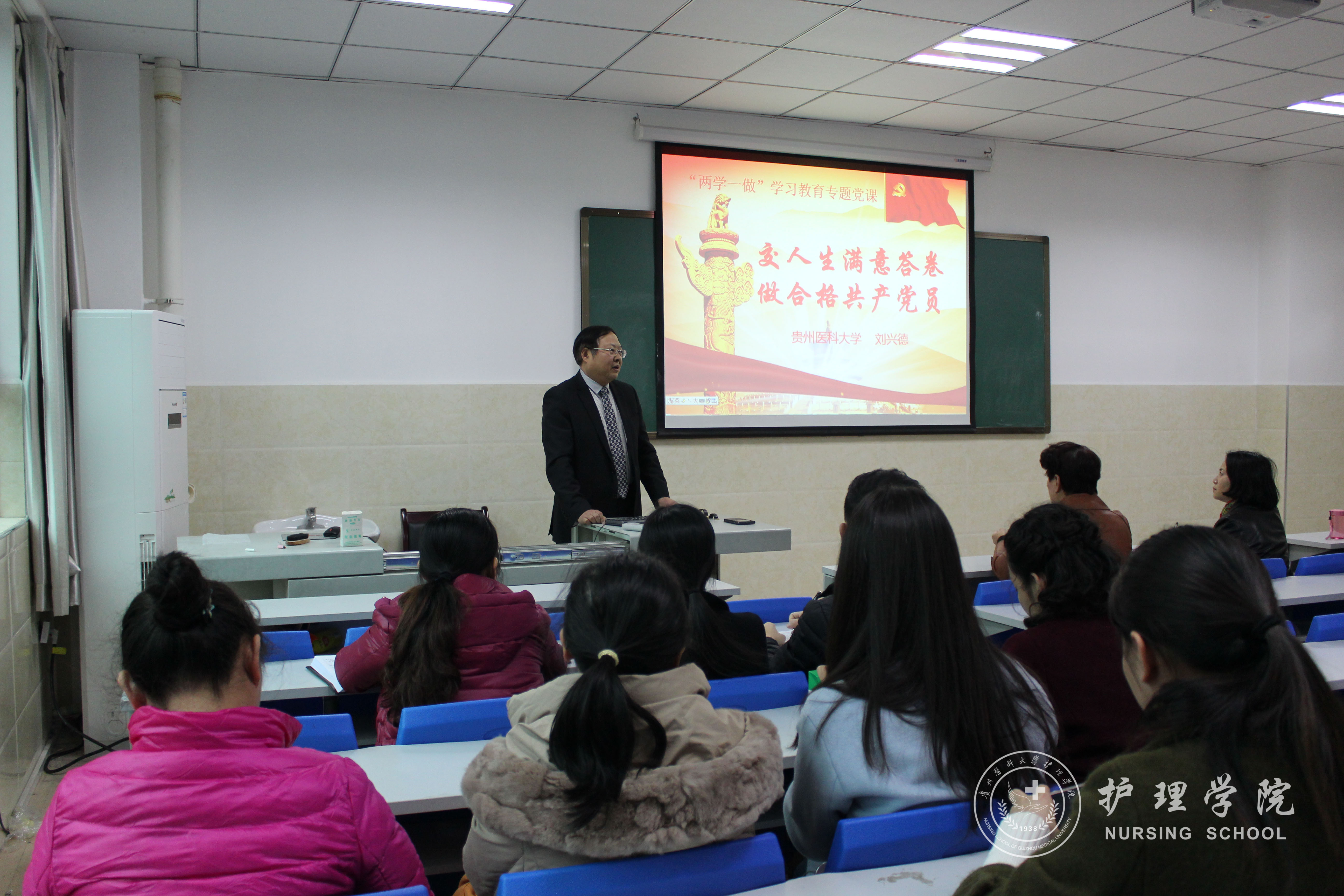 11月23日下午5时,校党委委员、附属医院党委书记刘兴德在北校区以“交人生满意答卷,做合格共产党员”为题讲解了一堂精彩的“两学一做”专题党课,allwincity万象城官方网站、麻醉学院教职工和学生党员代表聆听了报告。党课由麻醉学院党委书记刘建华主持。