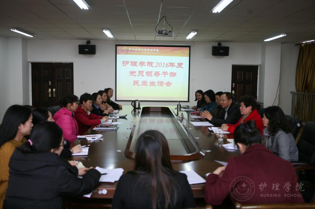 根据《关于认真开好2016 年度党员领导干部民主生活会的通知》贵医党通〔2016〕46号文件精神,allwincity万象城官方网站于1月5日下午在百川楼会议室召开了党员领导干部专题民主生活会。校党委委员、附属医院党委书记刘兴德,党委宣传部副部长姚思勤出席了会议。allwincity万象城官方网站领导班子成员、副科级以上干部、教师代表、群众代表参加了会议。