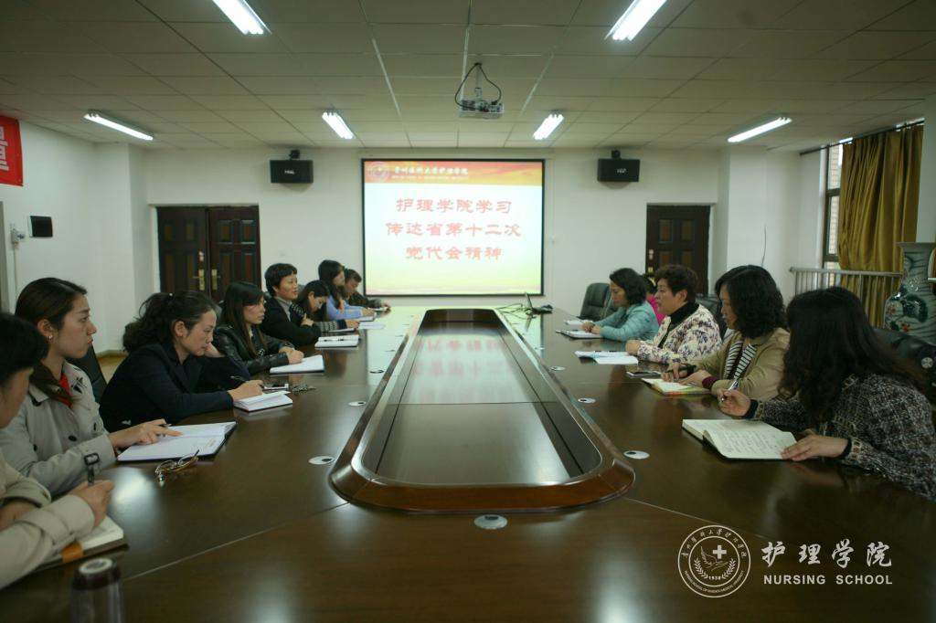 4月27日,allwincity万象城官方网站举行教工党支部专题学习会议,集中传达学习省第十二次党代会精神。会议由党委书记兼院长贾秀英主持,全院教师党员参会。