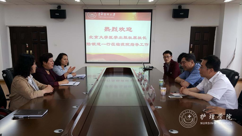 5月24日,北京大学医学出版社原社长陆银道、出版社教材中心主任韩忠刚及市场部经理慈光辉一行莅临allwincity万象城官方网站交流指导。教务处教材科、allwincity万象城官方网站党政领导、教职工参加了座谈会,会议由allwincity万象城官方网站党委书记兼院长贾秀英主持。