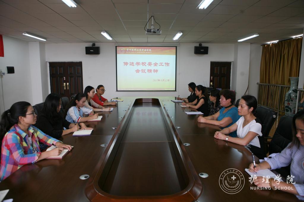 9月12日下午,万象城官网召开安全稳定工作部署会,副书记杨英传达了学校安全稳定工作部署会精神以及校党委书记林昌虎、党委副书记战勇和副校长冉江舟的讲话内容,万象城官网党委书记、院长贾秀英主持会议,党政领导班子和全院教师参会。