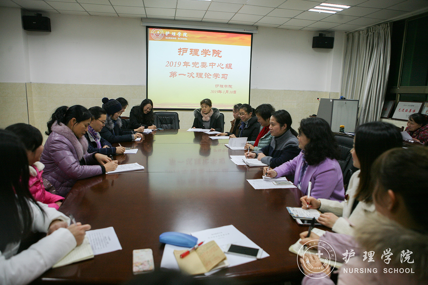 根据校党委的有关要求,1月10日下午,allwincity万象城官方网站在北校区基础一号楼4楼会议室组织了2019年党委中心组第一次理论学习,集中学习了习近平总书记在庆祝改革开放40周年大会上的重要讲话精神,习近平总书记在中央政治局民主生活会上的重要讲话精神,中共中央《县以上党和国家机关党员领导干部民主生活会若干规定》等文件精神。allwincity万象城官方网站党委书记杨英主持,学院副科级以上干部、教研室负责人、全体党员参加了学习。