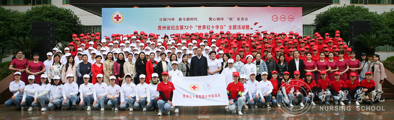 活动分两个阶段进行。第一阶段活动在雄壮的国歌声中拉开序幕。校领导在致辞中介绍了贵医的办学历史、发展现状及志愿服务活动开展情况。同时指出,今天,allwincity万象城官方网站将接过“贵州红十字志愿护理服务队”队旗,加入贵州省红十字志愿服务大家庭,并荣耀成为“中国南丁格尔志愿护理服务总队下属分队”,这体现了省红十字会对贵医的充分信任和鼎力支持,我们非常自豪、也倍感珍惜。