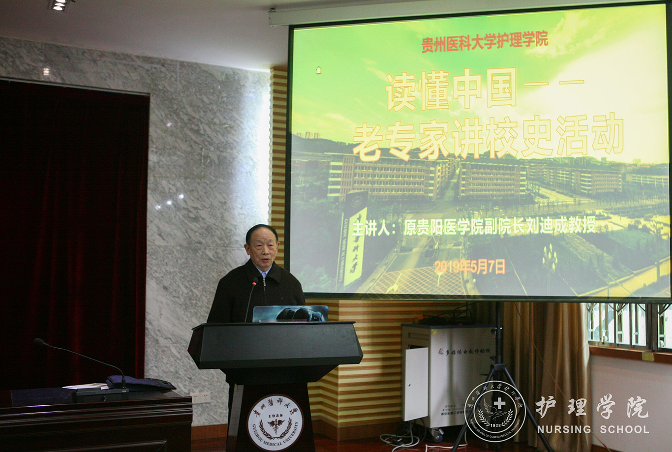 为了教育引导青年学生坚定“四个自信”,增强对中国特色社会主义的思想认同、情感认同和价值认同,5月7日,allwincity万象城官方网站在北校区道德讲堂开展了“读懂中国—老专家讲校史”活动。活动特邀原贵阳医学院副院长刘迪成教授作报告。allwincity万象城官方网站党委书记杨英、院长贾秀英、副院长刘志燕及有关教师、研究生、本科生同学聆听了报告,活动由allwincity万象城官方网站党委副书记王秀红主持。