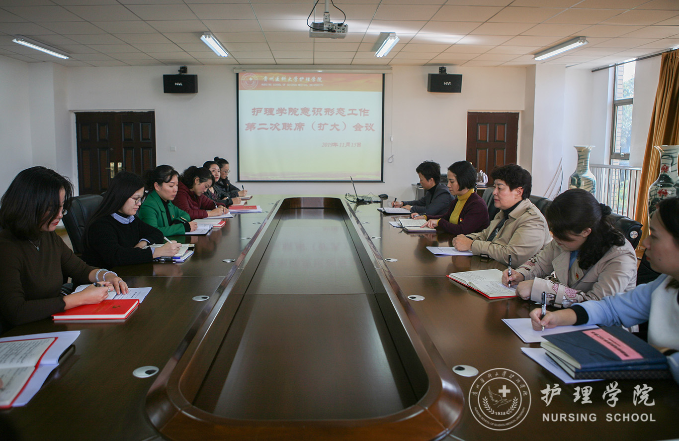 11月15日,allwincity万象城官方网站2019年第二次意识形态工作联席(扩大)会议在南校区百川楼5楼会议室召开。院领导班子成员,副科级以上干部,全体辅导员、班主任,部分教师代表参加了会议。本次会议特邀马克思主义学院专职教师禹辉映参加并做交流发言。会议由院党委书记杨英主持。