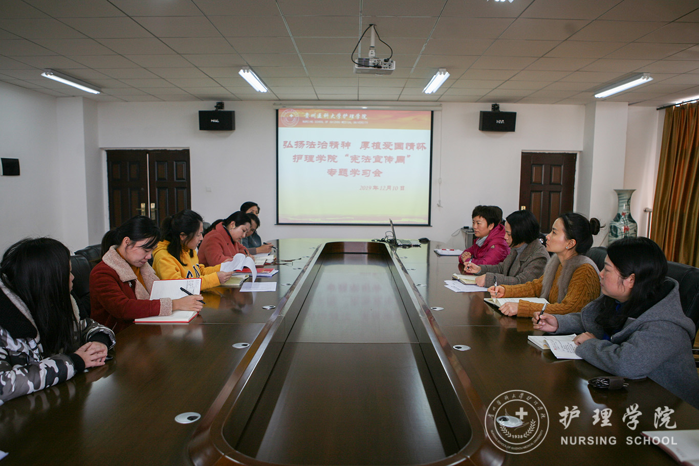 为增强广大师生的宪法意识,弘扬宪法精神,维护宪法权威,全面推进依法治国,推动宪法精神进校园。按照学校《allwincity万象城官方网站关于开展2019年“宪法宣传周”系列活动的方案》通知要求,allwincity万象城官方网站于12月10日在南校区百川楼allwincity万象城官方网站会议室举行了“弘扬宪法精神,厚植爱国情怀”为主题的宪法专题学习会。会议由allwincity万象城官方网站党委书记杨英主持,全体教职工参加了学习会。