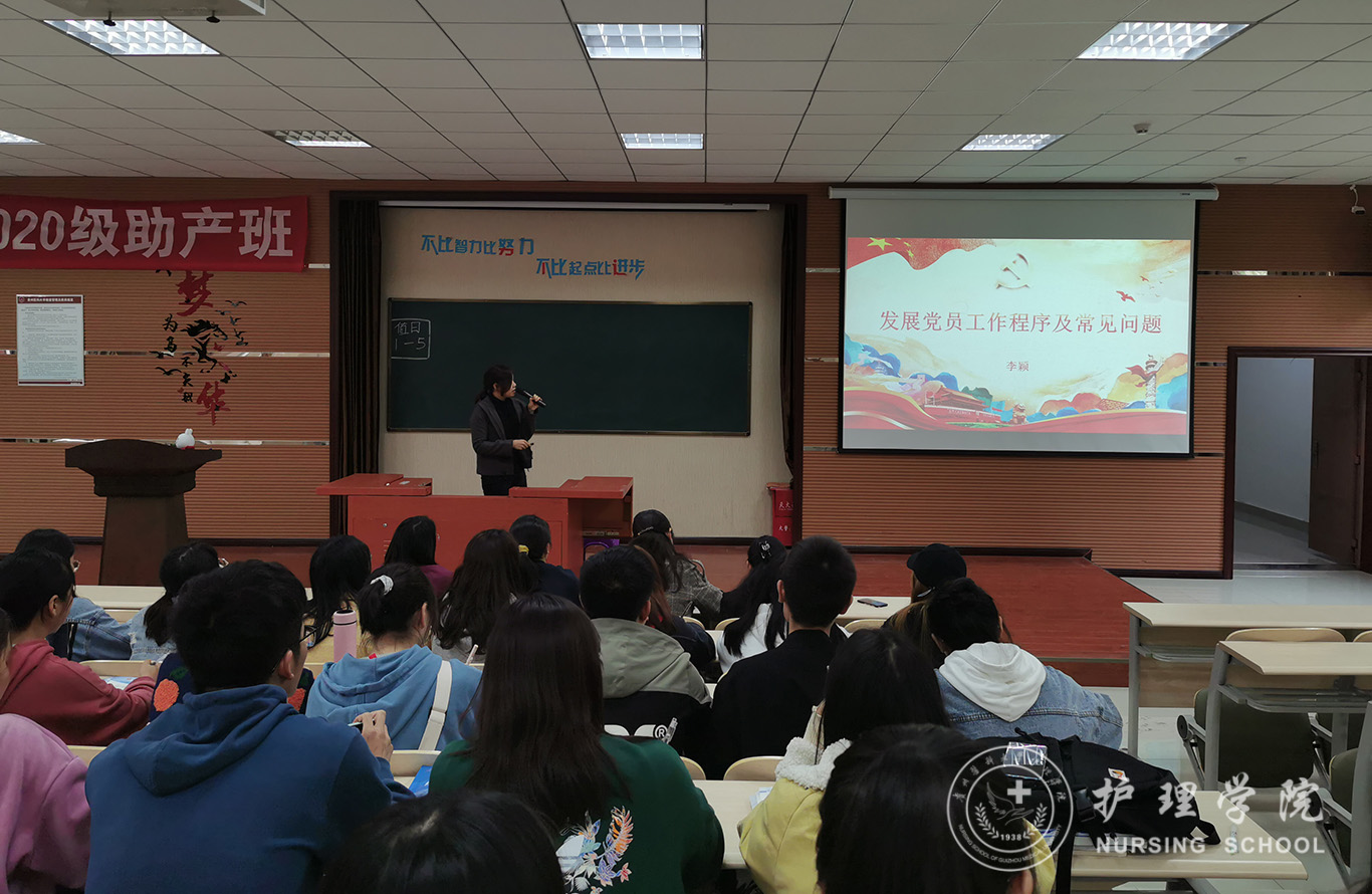 学院办公室副主任原学生第一党支部书记李颖老师以“培养合格党员、充分发挥作用”为题介绍了党支部书记的职责,工作内容,解读了《allwincity万象城官方网站学生党支部标准化建设工作》的文件要求,并就发展党员工作程序及常见问题,从几个阶段、对应材料、归档要求、注意事项等方面进行了详细介绍。
