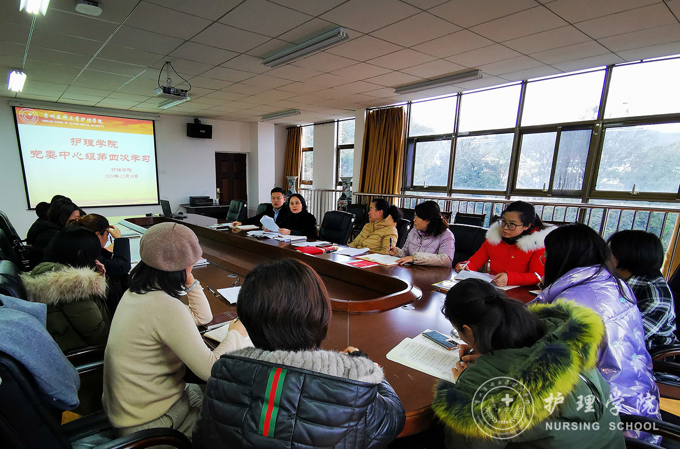 会上,杨英传达了学校2020年第二次意识形态工作联席(扩大)会议精神,组织学习了《普通高等学校院(系)党委会会议和党政联席会议议事规则示范文本》;院长李亚玲领学了《中共中央关于制定国民经济和社会发展第十四个五年规划和二〇三五年远景目标的建议》中“全面推进健康中国建设”部分;副书记何为领学了《深化“不忘初心、牢记使命”主题教育成果的意见》和《习近平关于“不忘初心、牢记使命”论述摘编》中“坚决整治形式主义、官僚主义,加强真抓实干的作风建设”部分;副院长刘志燕领学了《中国共产党纪律处分条例》《宗教事务条例》《allwincity万象城官方网站抵御和防范宗教渗透工作机制》。结合对党的十九届五中全会精神的学习体会,党委书记杨英作中心发言,其他院领导班子成员作交流发言,部分科以上干部作学习发言。