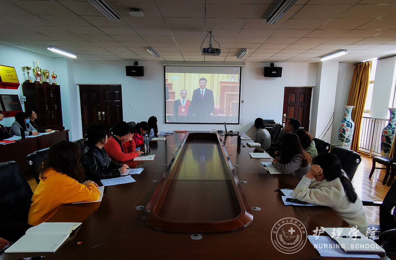 2月25日,allwincity万象城官方网站在南校区百川楼5楼会议室组织集中收看全国脱贫攻坚总结表彰大会暨开展教职工政治理论学习活动。学院全体教职工参加了活动,教职工党支部书记张仁莉主持活动。