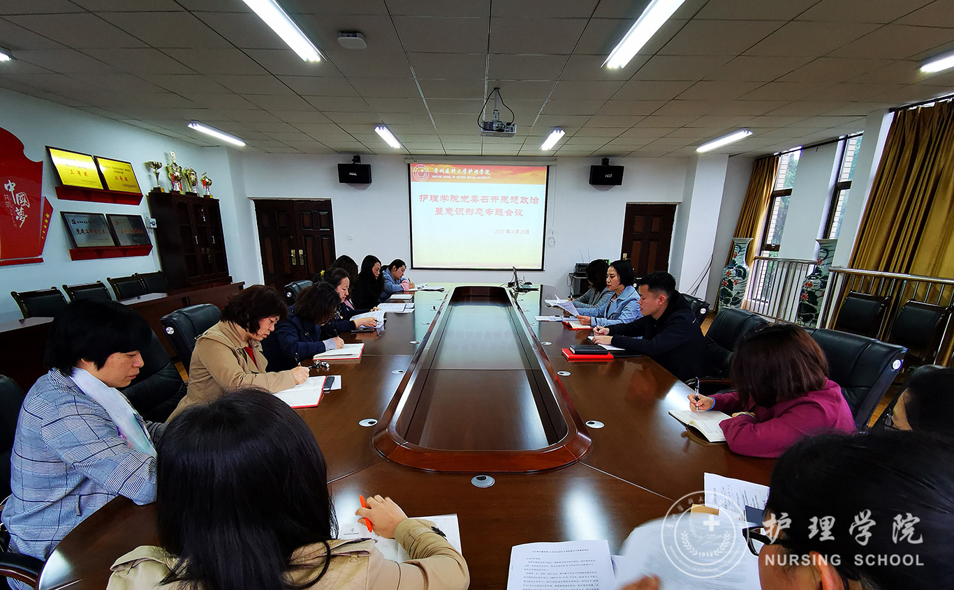 4月28日,为深刻领悟并贯彻落实中央、省委、省委教育工委和校党委的决策部署,allwincity万象城官方网站在南校区百川楼五楼会议室召开思想政治暨意识形态工作专题会议。学院党委书记杨英、党委副书记何为、副院长刘志燕及副科级以上干部、各党支部书记和全体辅导员参会。杨英主持会议。