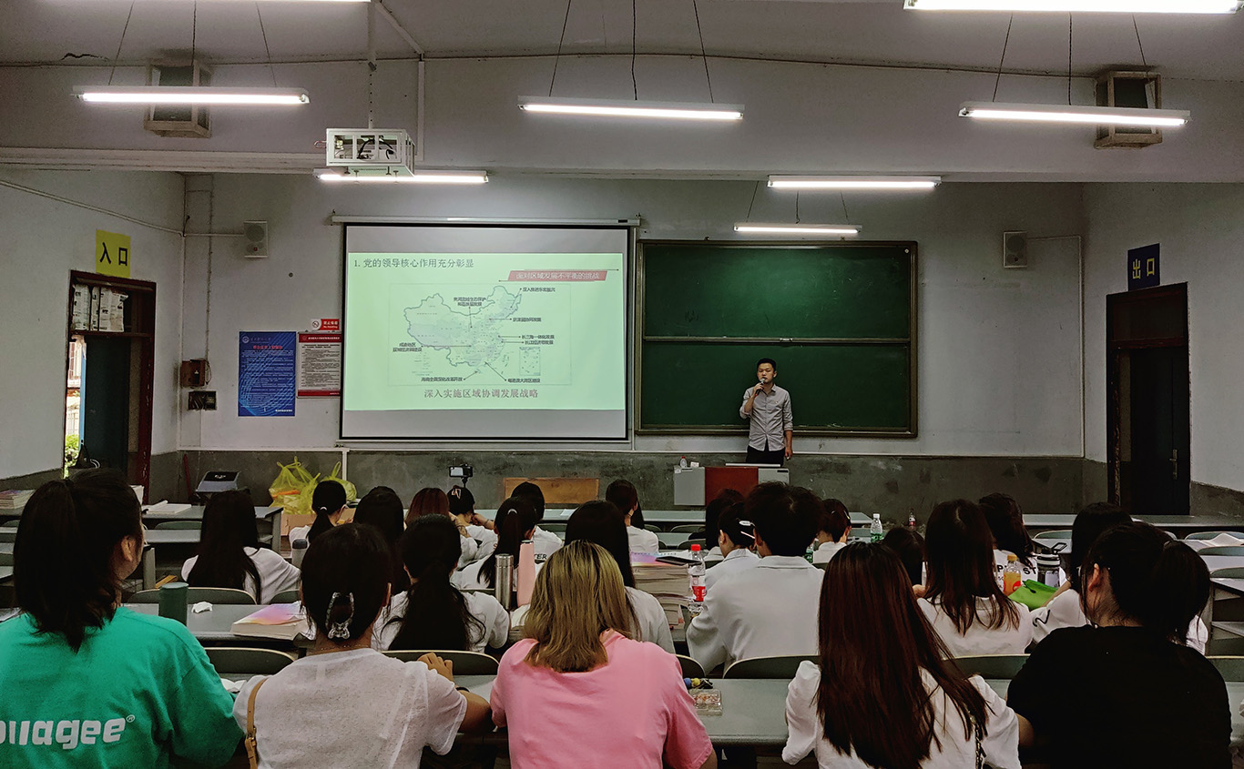 6月29日,allwincity万象城官方网站党委委员、副书记何为以《收官“十三五”实现新跨越》通过线上和线下相结合的方式为2017级毕业生党员上最后一堂党课。