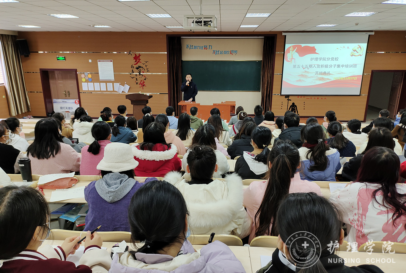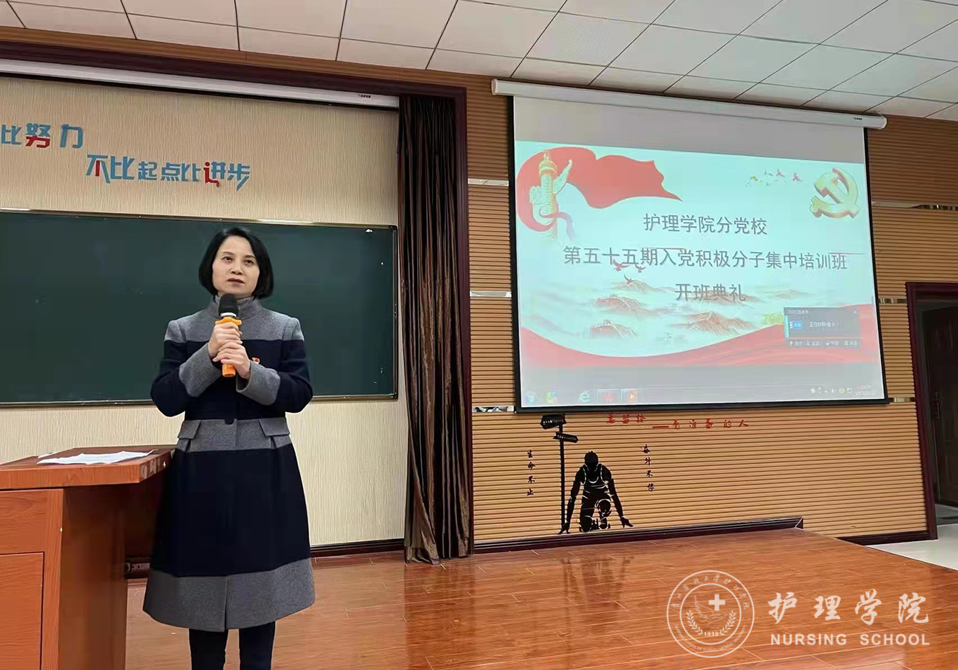 开班典礼在庄严的国歌声中拉开序幕。首先2020级助产学唐梦蝶代表全体入党积极分子承诺,将以积极、认真、严肃的态度对待此次学习,深刻学习党的基础理论知识,在思想上与党组织靠拢,争取早日加入中国共产党。接着,杨英对全体学员提出四点要求,一是要坚定信念,志存高远;二是要认真学习,提高修养;三是要端正入党动机,树立良好价值观;四是要严于律己,知行合一。让自己不单单成为一名合格的大学生,也能成为一名合格的共产党员。