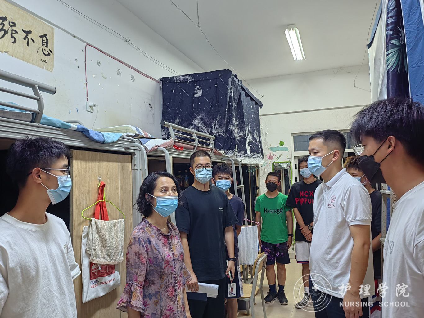 疫情发生后,学院党委第一时间响应疫情防控机制,党委书记杨英主持召开党政联席扩大会议,对疫情防控工作进行安排部署;院长李亚玲和副处级组织员张黎带队坚守北校区抗疫一线;党委副书记兼纪委书记何为、副院长王秀红带队坚守南校区抗疫一线;副院长刘志燕专项负责线上教学、实习安排等教学管理工作。学院全面形成了导师、辅导员、班主任、学生干部的网络化管理体系;严格落实疫情防控下的“日汇报”,安排专人负责师生日常健康数据统计,确保数据的准确性;学院领导、辅导员定期走访寝室,24小时待机,做到时时陪伴。