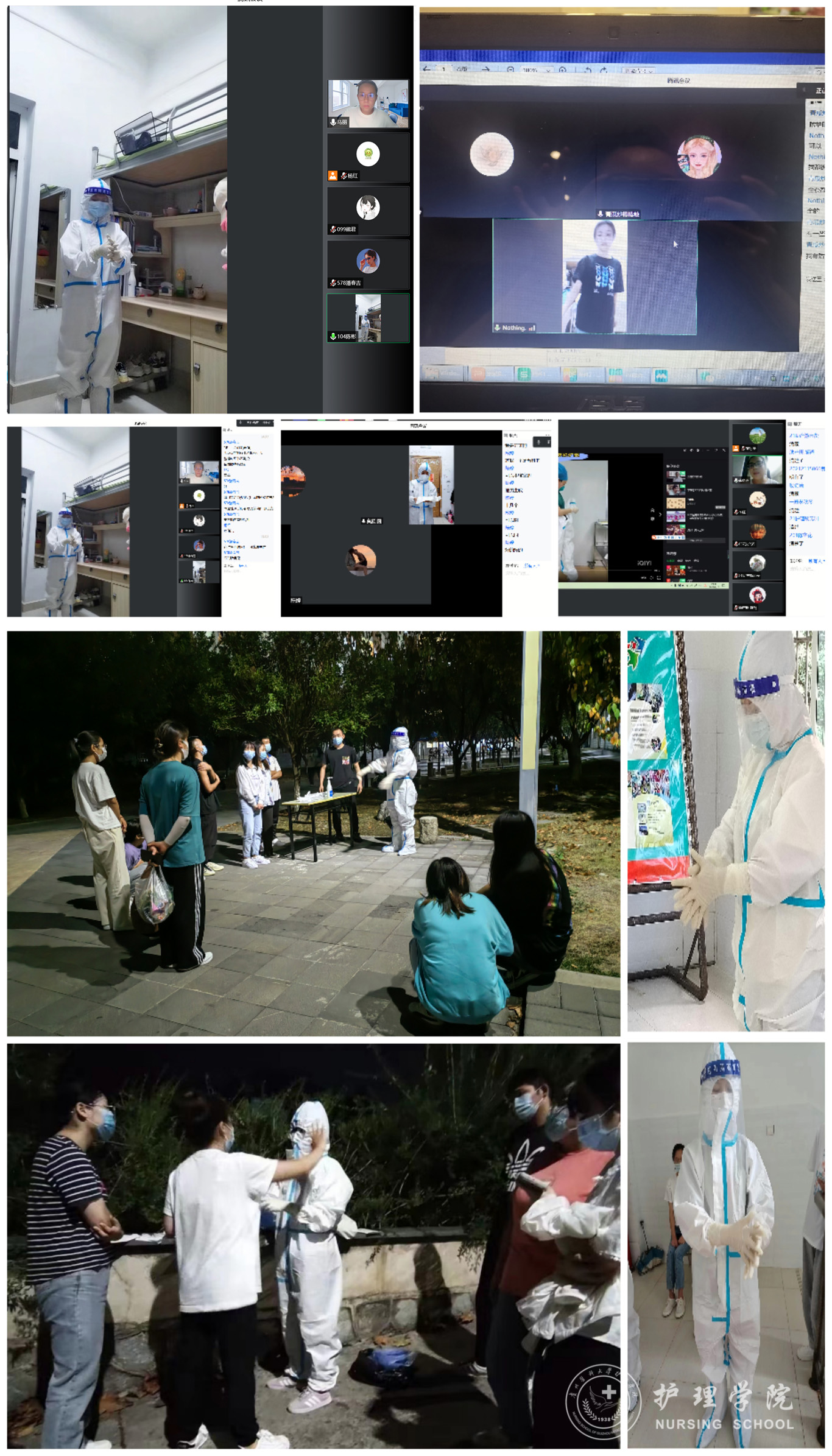 本次培训是学院在依托课堂教学、主题党日、护理技能协会活动开展各类常态化疫情防控技能培训的基础上,对低年级学生实践能力的一次再强化。根据当前疫情防控形势,培训采取线上线下相结合,学生在雨课堂线上自学加教师-志愿者-学生三级培训模式进行。教师线上重点就核酸采样(鼻咽拭子)操作技术、个人防护操作技术、样品保存、医疗废物处置等操作内容对志愿者进行培训及考核;志愿者考核通过后,在教师的指导下线下对学生进行培训,教师通过腾讯会议、微信、QQ等全程观察培训过程,对发现的问题及时纠正指导,严格把关整个操作流程,督促学生练习。