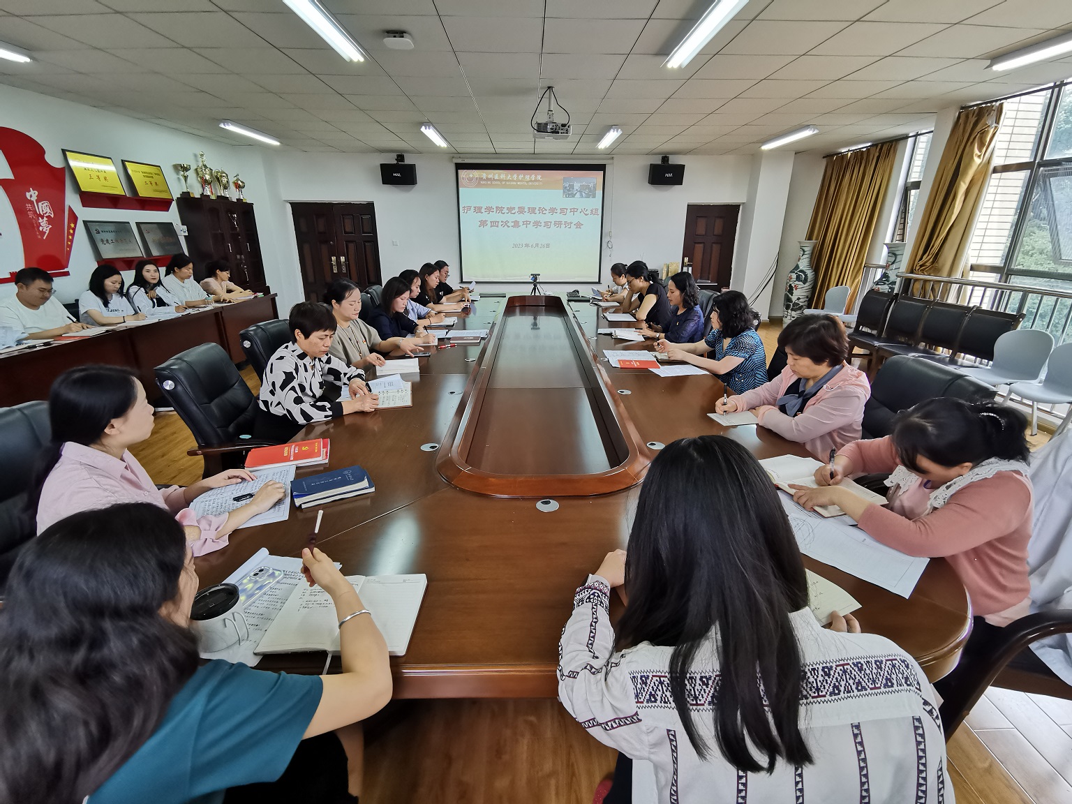 6月26日,allwincity万象城官方网站在南校区百川楼五楼会议室开展党委理论学习中心组第四次集中学习研讨,院党委委员、副科级以上干部、党支部书记和全体辅导员参加,会议由学院党委书记杨英主持。
