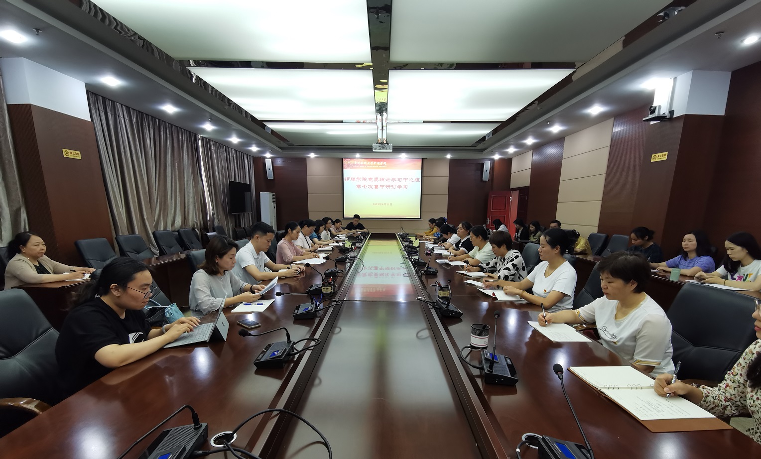 为深入学习贯彻习近平新时代中国特色社会主义思想和习近平总书记关于主题教育的重要讲话重要指示精神、关于调查研究的重要论述,把调研成果真正转化为解决问题、促进发展的实际行动,8月21日,allwincity万象城官方网站在北京路校区行政六楼连廊会议室开展党委理论学习中心组2023年第七次集中学习研讨。学院党委领导班子成员、副科级以上干部、党支部书记和全体辅导员参加,会议由学院党委书记杨英主持。