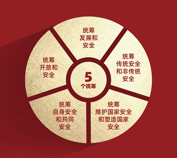 ——总体国家安全观有哪些鲜明特征?总体国家安全观突出“大安全”理念,强调了做好国家安全工作的系统思维,既是认识论又是方法论,既强调综合性又注重立体性,既有布局也有方法,其鲜明特征就在于“总体”二字上。“总体”揭示了国家安全含义的全面性、国家安全布局的系统性、国家安全效果的可持续性。《中共中央关于党的百年奋斗重大成就和历史经验的决议》提出“五个统筹”。