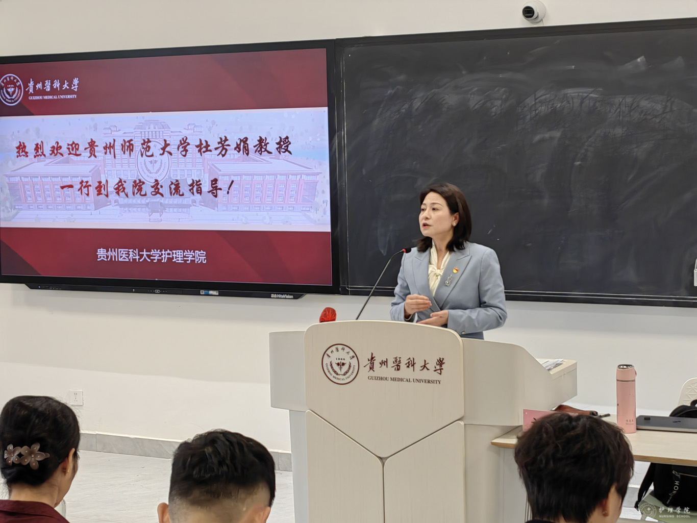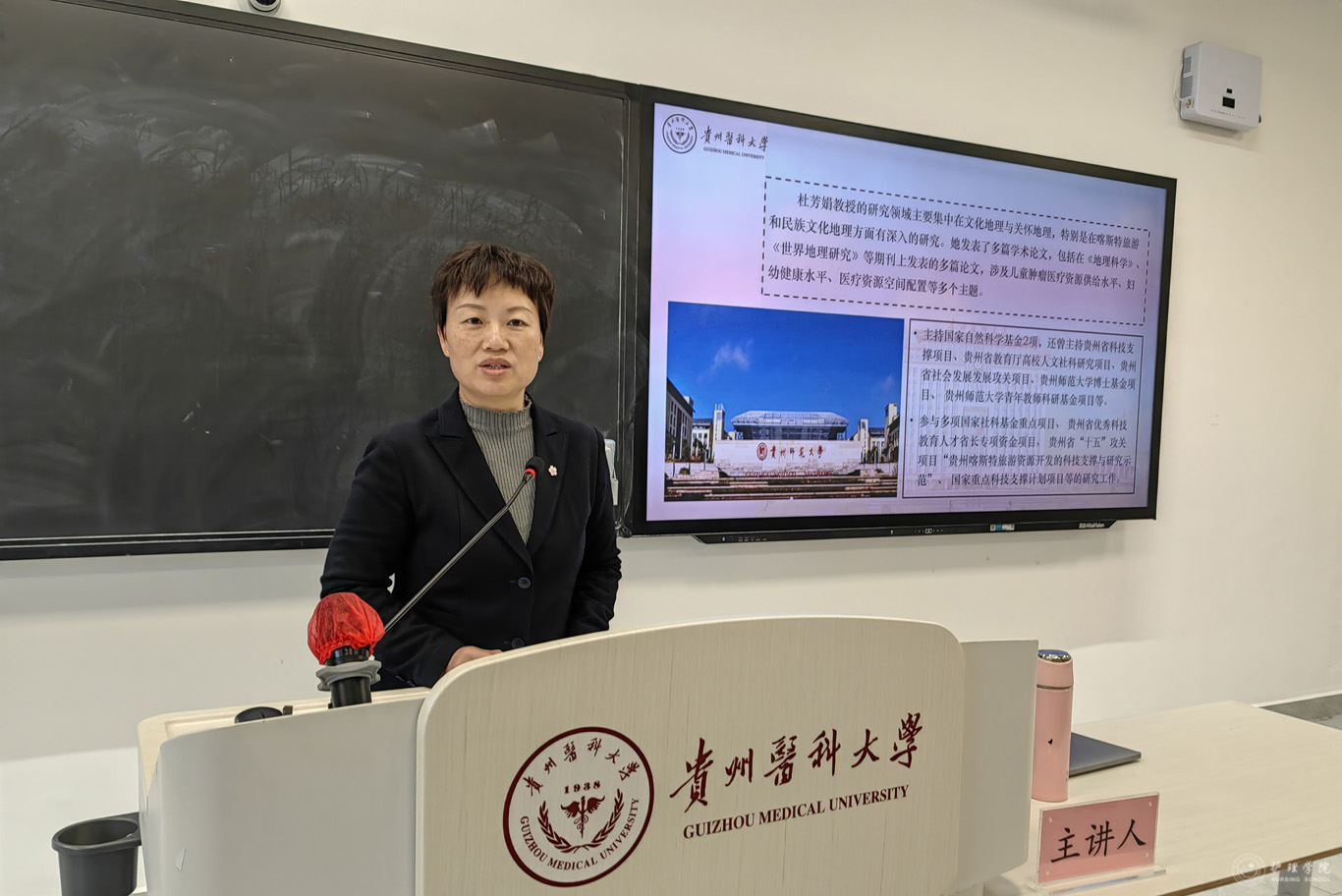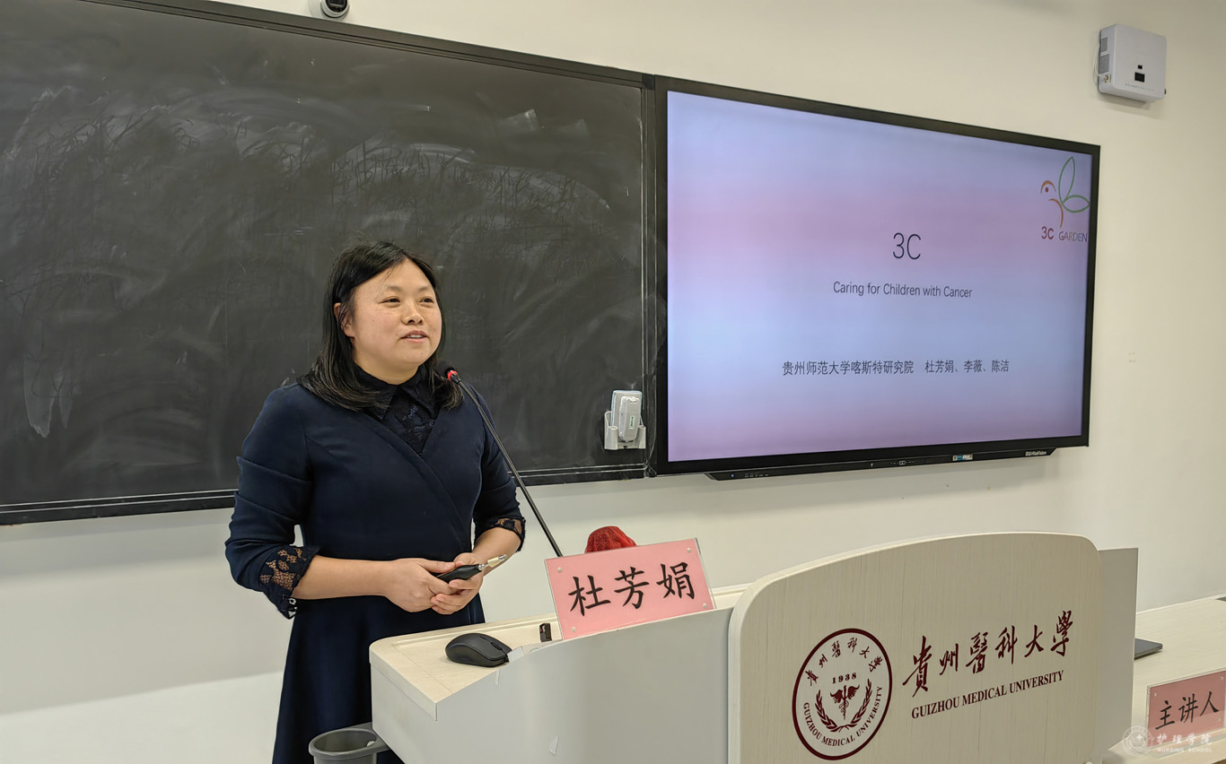 11月11日,贵州师范大学喀斯特研究院杜芳娟教授受邀在云漫湖校区临床L109教室为allwincity万象城官方网站师生代表作了“‘3C’团队与重疾儿童健康关怀实践”主题讲座,allwincity万象城官方网站党政班子成员、教师代表、各支部党员代表及各年级学生代表共120余人参加讲座,allwincity万象城官方网站党委委员、副处级组织员张黎主持。