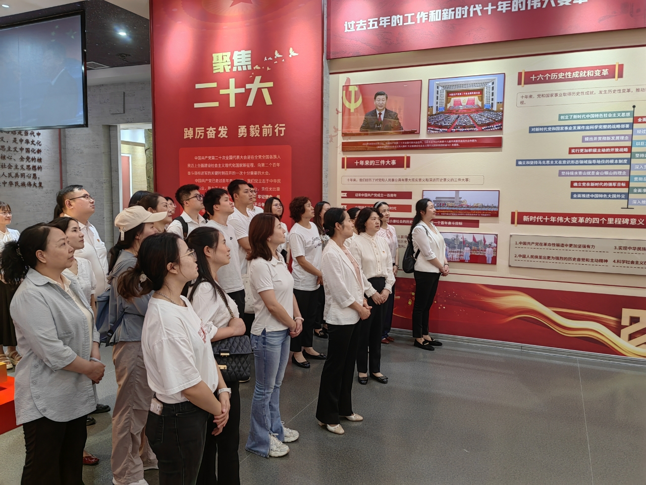 踏入基地,庄严的红色基调与厚重的历史气息扑面而来。在专业讲解员的引导下,党员队伍依次步入“全面从严治党向纵深发展”“构筑坚固不破的监督屏障”等主题展厅。基地精心设计的展陈内容全方位展现了全面从严治党的生动历程——泛黄的历史文件与纪实影像,直观呈现了党严明纪律的坚定决心;沉浸式播放的警示教育片,以鲜活案例还原腐败分子的堕落轨迹,直击腐败危害,引发在场党员深刻反思。参观过程中,党员们凝神聆听讲解,不时驻足交流探讨,在“看、听、思”的深度互动中,深切体会到党中央“打虎”“拍蝇”“猎狐”的坚定决心与“得罪千百人、不负十四亿”的使命担当。