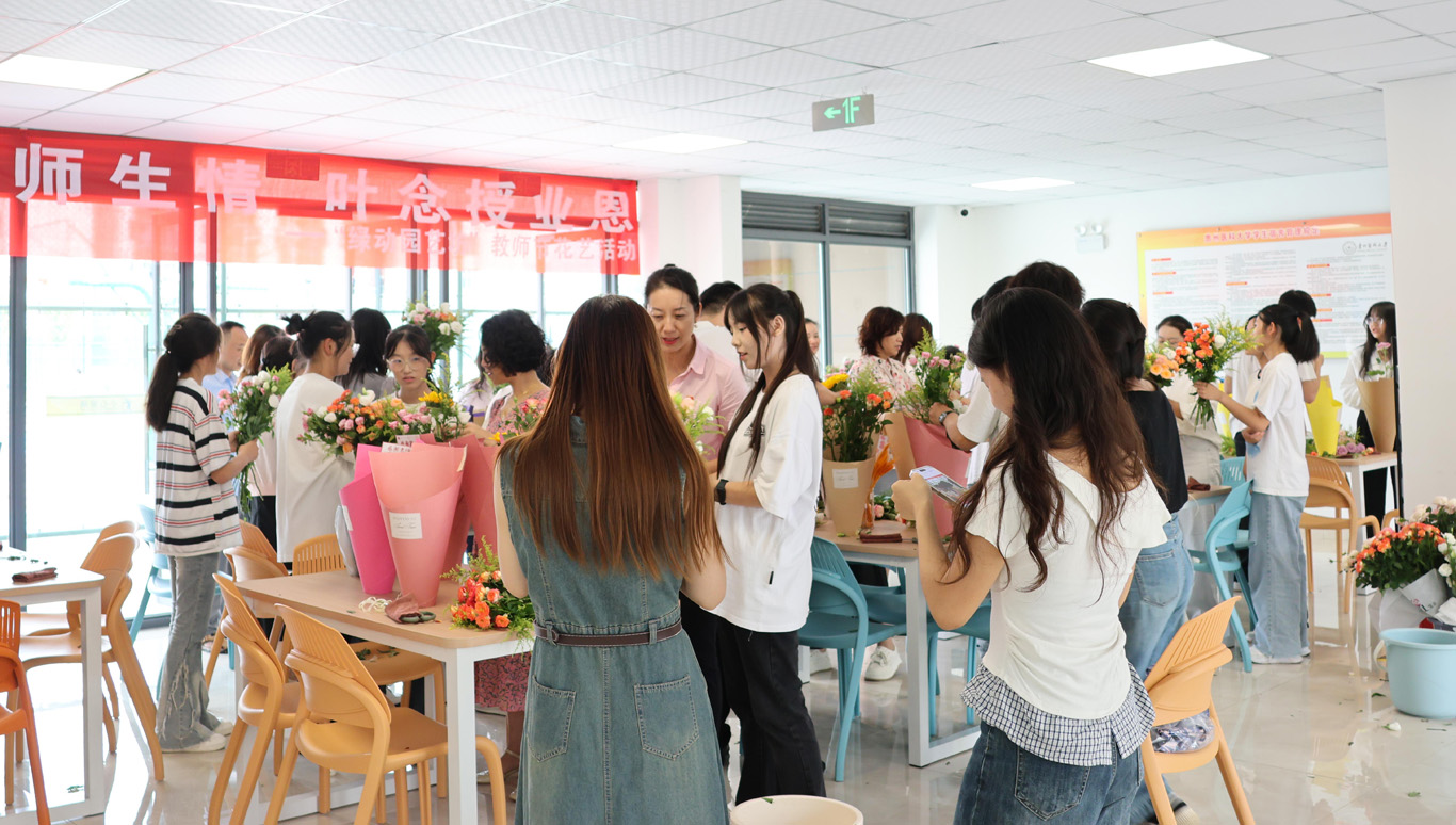 在悦学苑“一站式”学生社区,学院师生欢聚一堂,以“花叙师生情叶念授业恩”为主题开始了一场别开生面的文化与审美之旅。研究生辅导员殷艳以专业细致的教学,带领大家系统学习了插花知识。全体师生共同剪、修、斜、插,一招一式体悟插花艺术的灵动与创意,纷纷表示“枝叶虽简,却让人的肩颈随动作舒展,心情也在花香里沉静”。花成景成人亦成,活动最后,全体师生手捧自己的插花作品合影留念,在镜头里定格下一场与花相遇的温柔记忆。