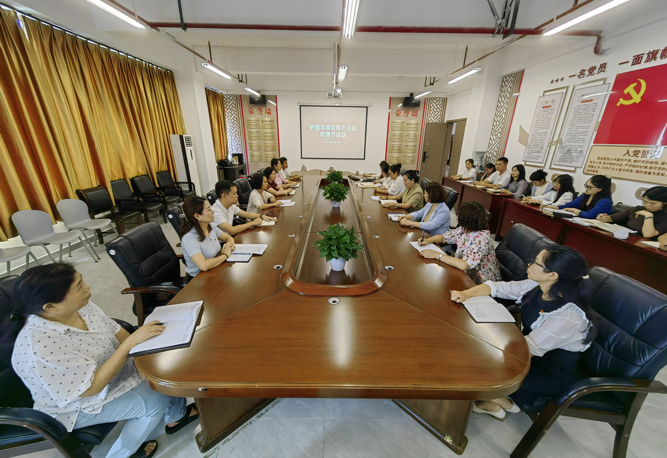 在allwincity万象城官方网站会议室,学院党委组织全体教职工深入学习贯彻党的二十大和二十届二中、三中全会精神,深入学习贯彻习近平总书记关于教育的重要论述,特别是教育家精神的深刻阐释,引导全体教职工弘扬践行教育家精神,围绕立德树人根本任务,争做“四有”好老师和“四个引路人”。