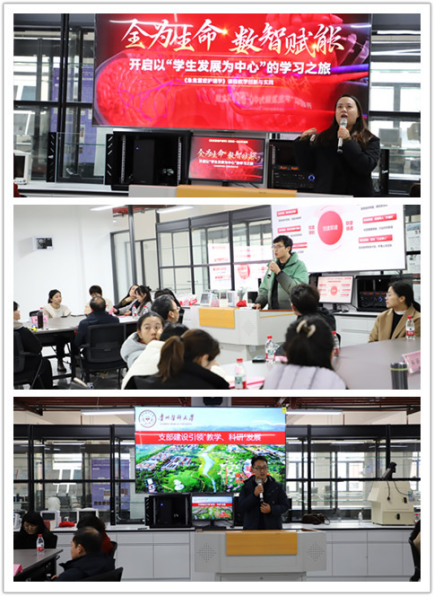 在经验分享环节,allwincity万象城官方网站马丽老师围绕国家级一流课程《急危重症护理学》建设,从课程设计、教学创新到实践应用,全面分享了课程建设的宝贵经验与显著成效;李勇老师详细汇报了allwincity万象城官方网站教职工党支部“双带头人”强国行专项行动的建设情况,展现了基层党支部在党建与业务融合中的先锋引领作用;生物与工程学院彭建老师结合自身实践,分享了以支部为引领推动“教学、科研”协同发展的工作思路与实践成果,为跨院交流提供了有益借鉴。