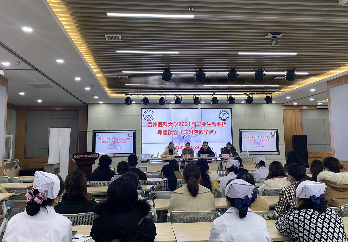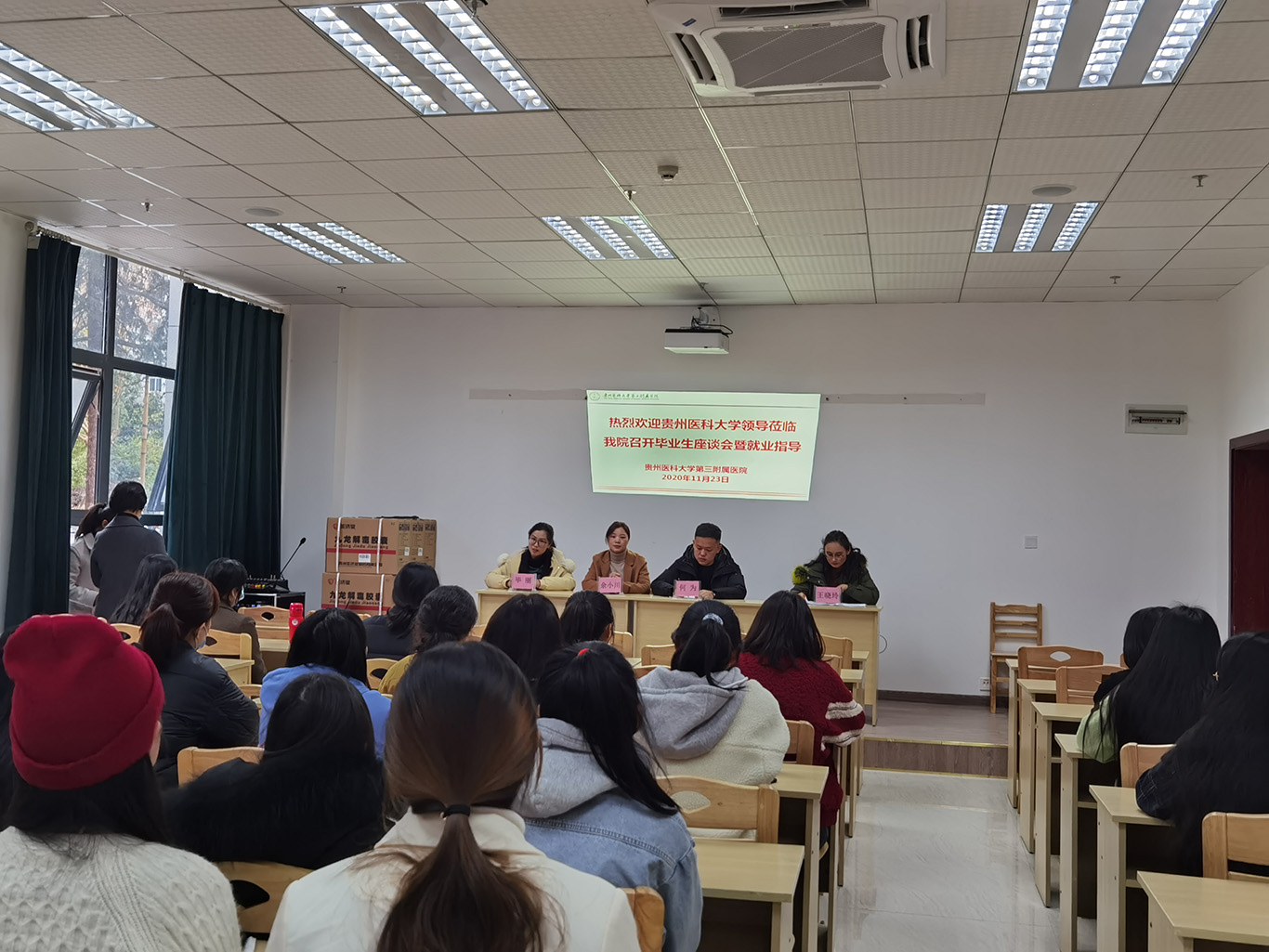 11月2日-26日,为进一步加强对相关附属医院教学点及实习点护理学毕业生(含专升本)日常管理和就业工作的指导,allwincity万象城官方网站相关领导及部门负责同志分别前往allwincity万象城官方网站附属白云医院、allwincity万象城官方网站第二附属医院、allwincity万象城官方网站第三附属医院、铜仁市人民医院、黔南州人民医院等教学点及实习点开展毕业生就业指导座谈会。allwincity万象城官方网站党委书记杨英、党委副书记何为、招生就业处就业指导中心主任余小川、招生就业处普招科副科长韩康、院团委副书记王晓玲、院学生科副科长毕丽,参加就业指导座谈会。