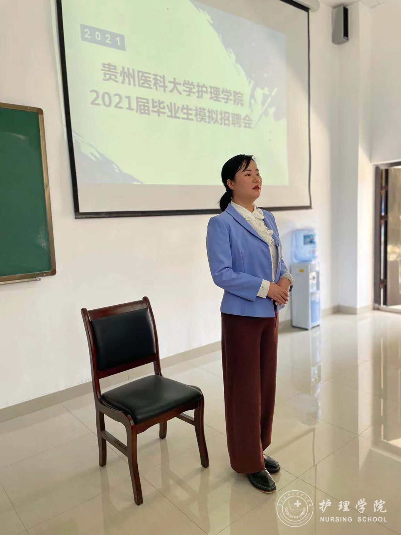 最后,杨英强调,首先同学们应树立正确的就业观,先就业再择业;同时自我介绍要有亮点,突出自己的优势,仪表要端庄、大方,精神饱满;面试过程中语言要流畅、自然、充满自信。