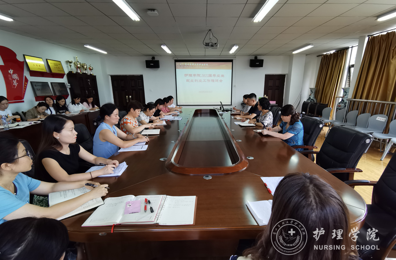 会上,毕业班辅导员李杏春通报了2022届校本部毕业生就业情况,学生科副科长毕丽通报了2022届护理学(专升本)毕业生就业情况。随后,全院教职员工围绕如何进一步做好毕业生就业工作、就业工作推进中存在的困难等方面进行了交流。李红老师作为所帮扶学生就业率达100%的指导老师受邀分享帮扶经验和心得体会,会上大家畅所欲言,纷纷表示会后要继续和未就业学生加强联系,积极推荐岗位,尽最大努力帮助他们就业。交流过程中,何为分享了自己的帮扶经验,强调全体老师还需提升就业帮扶技巧,用心用情继续做好就业帮扶工作。