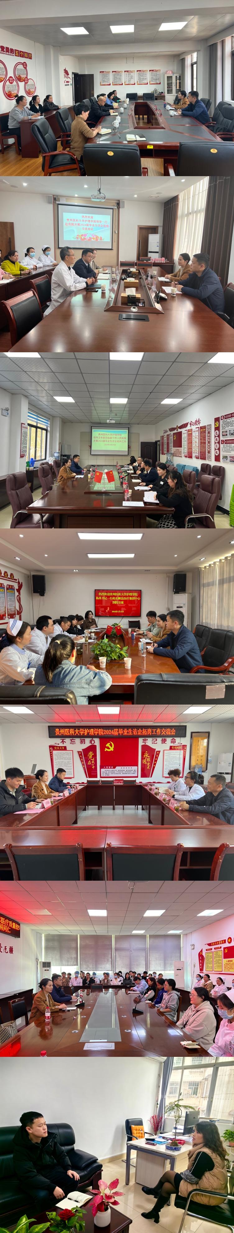 在此次访企拓岗工作中,工作组走访了黔南州人民医院、黔南州中医院、都匀市人民医院、长顺县医疗集团中心医院、惠水县人民医院、通用医疗贵阳三00医院,深入了解医院招聘需求、工作环境以及未来发展趋势等信息。在黔南州人民医院,工作组组织实习生召开了座谈会,与万象城官网实习生开展了亲切交谈,深入了解学生的实习动态。此次走访旨在与就业单位进行沟通交流,拓宽就业渠道,同时对实习生进行引导和鼓励,更加深入地了解行业对人才的需求,为下一步的教育教学改革提供了坚实的基础和保障,也为今后allwincity万象城官方网站的人才培养质量和就业质量的提高指明了方向。