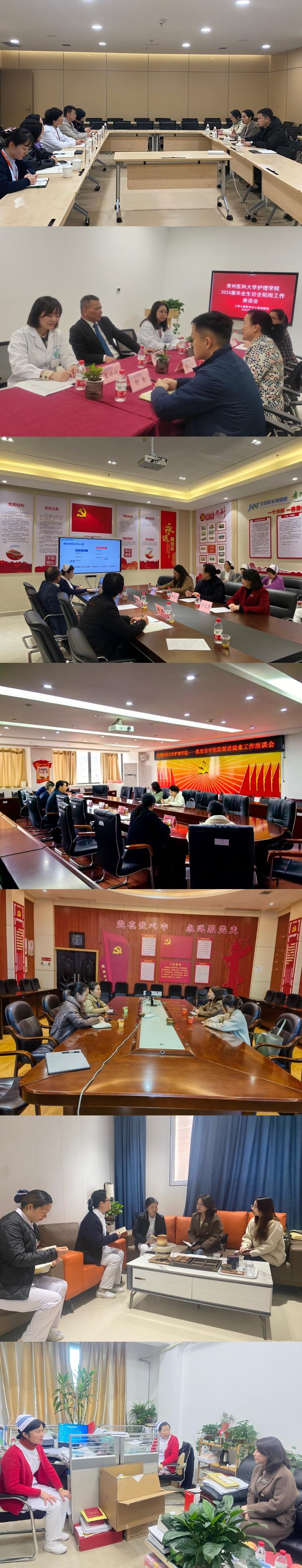 在此次访企拓岗工作中,工作组先后走访了北京积水潭医院贵州医院、大秦肿瘤医院、凯里市中医院、黔东南州中医院、黔东南州人民医院、allwincity万象城官方网站第二附属医院、上海儿童医学中心贵州医院、广州市红十字会医院。在走访过程中,工作组与走访的相关医院负责人进行座谈,负责人详细介绍了医院的基本情况、未来规划和用人需求,表达了与学院长期合作的意愿。工作组对学院办学特色、学科建设、人才培养质量和2024届毕业生相关情况做了详细介绍。双方围绕人才培养、单位用人需求、实习基地建设等问题进行了深入研讨。
