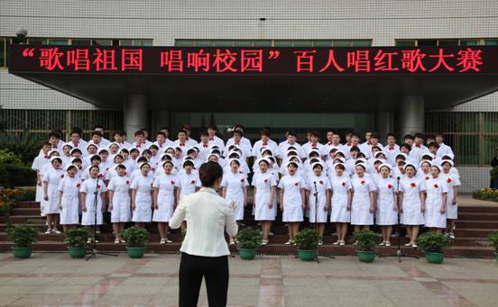 为隆重庆祝中国共产党建党90周年,重温党的光辉历程,歌颂党的伟大成就,进一步深入开展创先争优活动,唱响红色时代主旋律,展现青年大学生朝气蓬勃的精神风貌,由学工部、学生处主办的“贵阳医学院庆祝中国共产党建党90周年‘歌唱祖国 唱响校园’百人合唱比赛”于5月25日在学校广场隆重举行。