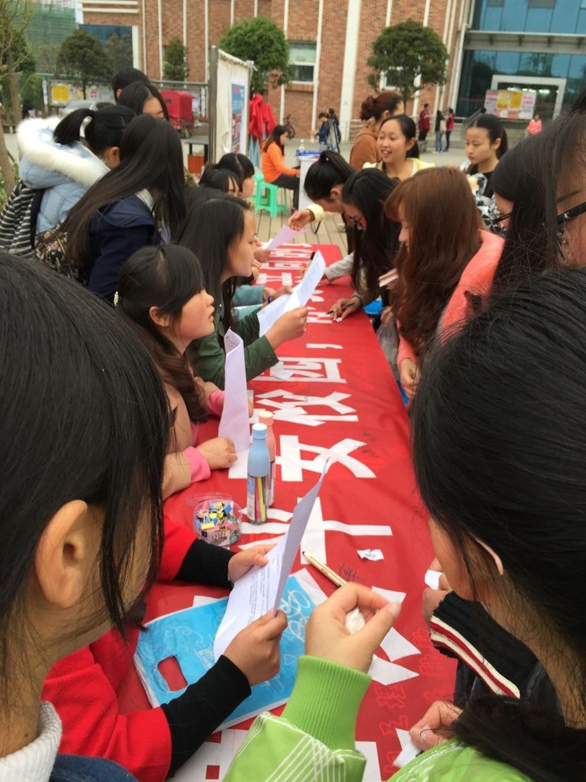 活动以有奖竞答的形式开展,同学们积极参与答题,工作人员也仔细为同学们讲安全知识。最后大家在横幅上签字,志愿做一名安全知识的宣传员,做保卫学校安全的一份子。