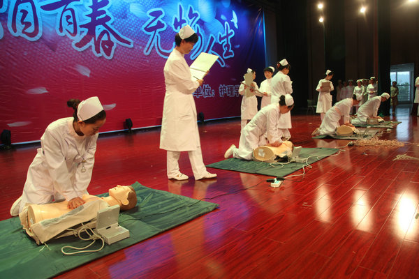 本次活动共分为2014级护生授帽、护理技能比赛、护理专业形象展示三个部分。在优美的音乐声中,2014级护生戴上了洁白的燕尾帽,并在allwincity万象城官方网站贾秀英书记的带领下宣读了护生誓词,手捧蜡烛高唱了护士之歌。授帽仪式之后,就是精彩紧张的护理技能比赛,主要考验的是选手对心肺复苏术操作流程的掌握情况,共16名选手分四组进行了激烈的角逐,选手们专业的态度,专注的神情,娴熟的操作赢得了阵阵掌声。活动最后部分,训练有素、仪态端庄、落落大方的同学向现场观众展示了护理人员标准优美的站、坐、蹲、走等姿态。allwincity万象城官方网站副院长刘志燕在赛后对选手表现进行了点评。