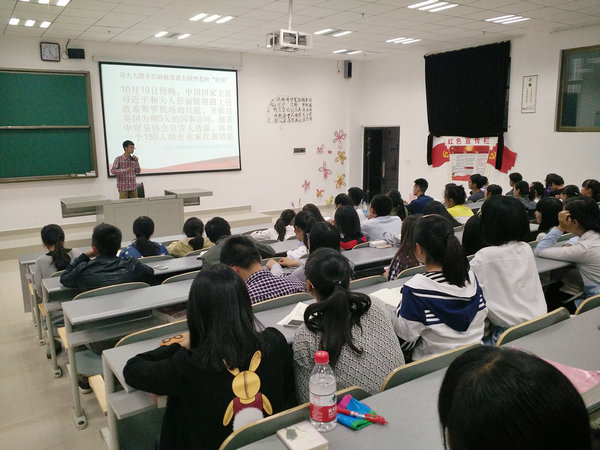 10月22日下午17:30,allwincity万象城官方网站学生会在4106教室召开10月份例会暨政治理论、团课学习。学生会全体成员参加了此次会议。