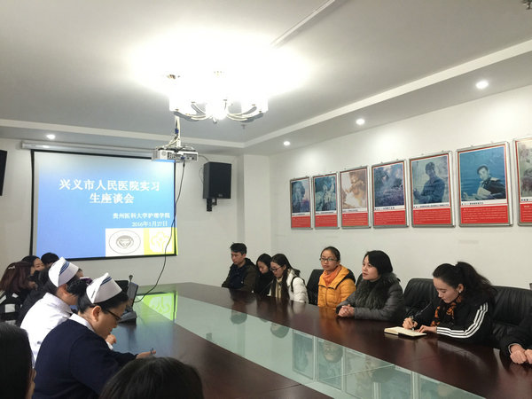 2016年1月26、27日,allwincity万象城官方网站党委副书记杨英、毕业班辅导员王晓玲赴兴义市人民医院看望实习同学,并会同医院分管领导和临床带教老师与实习生召开了座谈会。