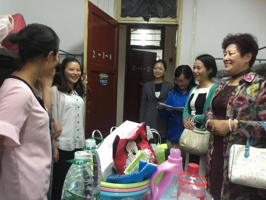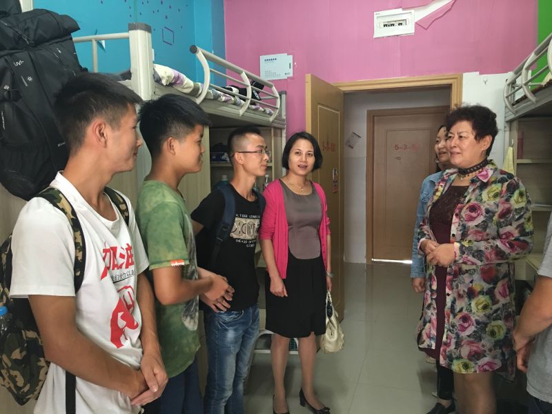 在秋风送爽的日子里,我校迎来了2016级新同学,共617名。在8月27日、28日为期两天的迎新时间里,为了表示万象城官网领导对新生的关心,学院领导一行走访了2016级新生和2014级专升本班新同学的寝室,并与新生进行亲切交谈。参加此次走访的有:allwincity万象城官方网站党委书记贾秀英、党委副书记杨英、学生科科长曾敏、分团委书记金晶和各年级辅导员。