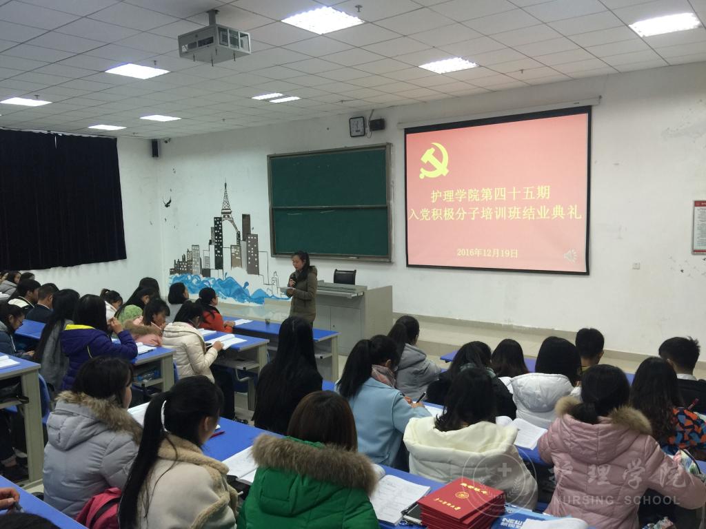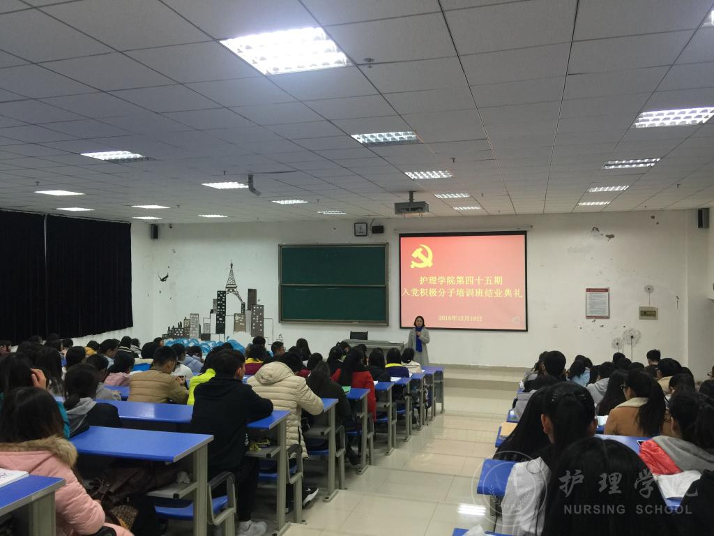 12月19日下午,allwincity万象城官方网站第四十五期入党积极分子培训班结业典礼在allwincity万象城官方网站南校区1404教室举行,allwincity万象城官方网站党委副书记杨英、allwincity万象城官方网站教工党支部支委毕丽、allwincity万象城官方网站学生第一党支部书记李颖和133名入党积极分子参与了结业典礼。