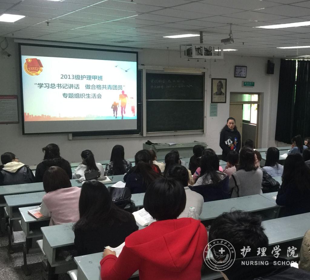 4月21日下午15时,allwincity万象城官方网站在北校区3301教室举行了“学习习近平总书记重要讲话,做合格共青团员”专题组织生活会,参会的有allwincity万象城官方网站分团委负责人王晓玲老师和2013级护理甲班全体同学。