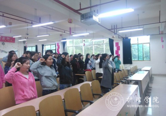 5月2日下午17:00,allwincity万象城官方网站在北校区4101教室开展了“不忘初心跟党走”入团仪式教育活动。本次会议由14助产班团支部副书记张肇琴主持,allwincity万象城官方网站部分团员代表参加了此次活动。