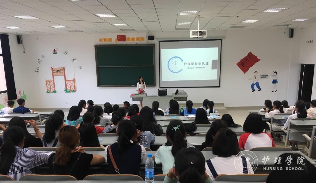 9月3日晚,allwincity万象城官方网站2017级甲、乙、丙三个新生班分别在南校区7404、7405和7406教室开展了护理学本科专业认证主题班会活动。2017级新生辅导员、班主任及全体新生参加了此次活动。新生班主任吴俊、王丽、李宇作为主讲人,为新生们讲授护理学专业认证的相关知识。活动由新生辅导员王晓玲、马景瑶主持。