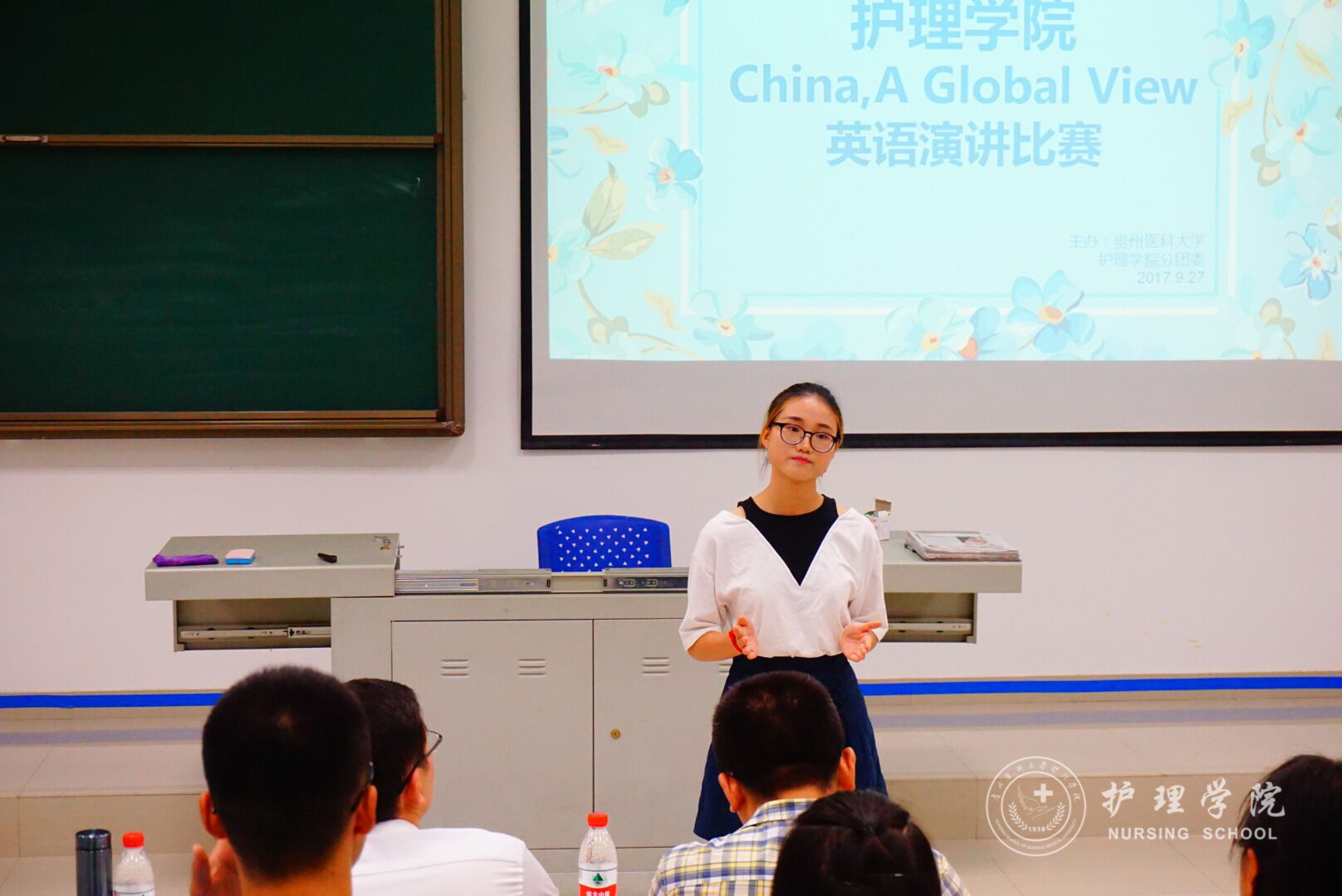 9月27日下午6:30分,万象城官网在南校区4403教室举行了“China,A Global View”英语演讲比赛。本次比赛由外国语学院教学科研管理科副科长何晓涛老师和allwincity万象城官方网站2017级辅导员马景瑶老师担任评委,学生会礼仪部薛露露同学担任主持,14名选手参加了本次比赛。
