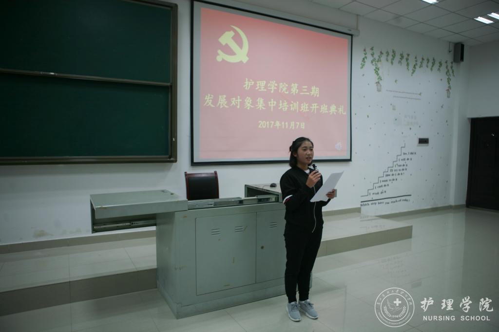 11月7日下午,allwincity万象城官方网站在南校区4405教室召开了第三期发展对象集中培训班开班典礼,allwincity万象城官方网站党委副书记杨英、allwincity万象城官方网站教工党支部支委毕丽、allwincity万象城官方网站办公室陈瑜、allwincity万象城官方网站学生党支部副书记马景瑶和54名学员参加了开班典礼。典礼由本期党校班主任李颖主持。
